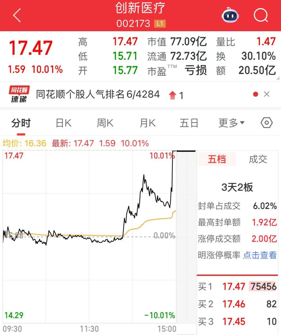 8月7日尾盘,脑机接口概念股突然集体拉升,其中创新医疗(002173)在14时51分左右由涨幅不到4%拉升至涨停板,收盘涨停板封单达到7.55万手;翔宇医疗由涨幅不到6%,拉升至11%以上;南京熊猫由平盘附近直线拉升至涨5%以上。