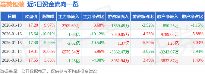 1月19日的资金流向数据方面,主力资金净流入2709.69万元,占总成交额3.68%,游资资金净流出1859.45万元,占总成交额2.52%,散户资金净流出850.25万元,占总成交额1.15%。