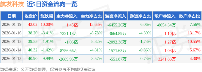 1月19日的资金流向数据方面,主力资金净流入1.45亿元,占总成交额13.63%,游资资金净流出6455.26万元,占总成交额6.06%,散户资金净流出8054.34万元,占总成交额7.56%。